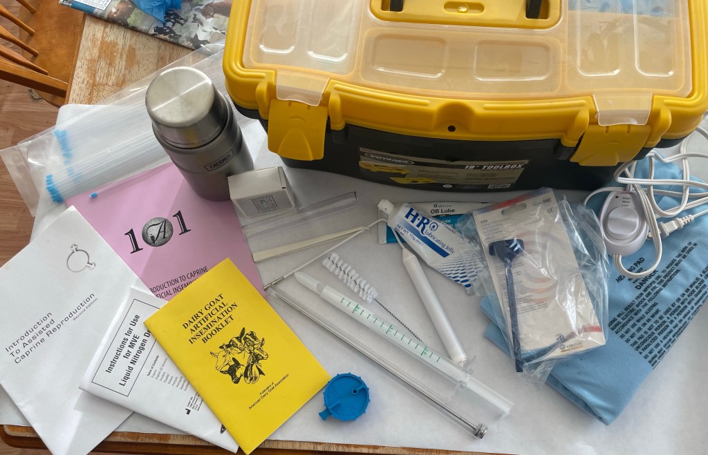 I also have two very helpful books about ai also purchased through Bio-genics $14.95 Introduction to Assisted Caprine Reproduction & $7.00 ADGA Insemination Booklet .