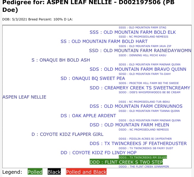 Nellie is out of my favorite doe, and she is showing structural improvement over her dam, having a longer rump, more angularity, especially in rear legs and greater udder capacity though her rear udder attachments aren’t quite what I’d like to see. She is easy to milk. Her dam has a pending 4*M, though I’ve been holding my breath on that since 2022 waiting for ADGA to follow through. Her sire is a *B.