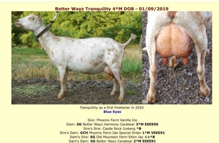 It’s exciting to have the son of ELITE’s in our tank! His dam Better Wayz Harmony Carabear is one of 3 Elite daughters by Better Wayz Carabear & is also one of 19 SG daughters by Old Mountain Farm Elton Jay! Harmony holds the all-time record for butterfat production in the Nigerian dwarf breed as of 2020. GCH Phoenix Farm Ida Special Order has a phenomenal udder and has also proved herself in the show ring winning 3x GCH, 4xBOB and 1xBIS awards.
