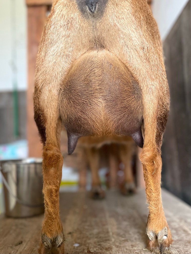 I’m thrilled to have this 2024 doe kid out of Nellie, who is so correct and elegant, & sired by our Round Mountain Creamery ai bred buck we were fortunate to have the opportunity to buy and bring in some direct Old Mountain Farm lines.