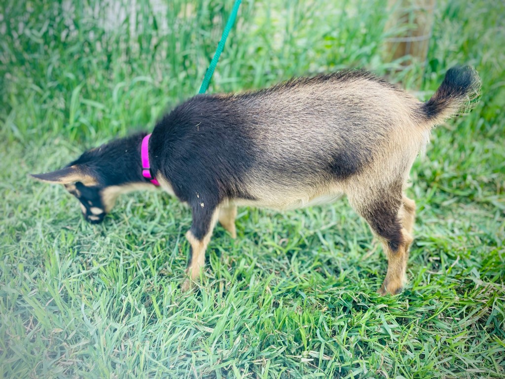 Dusty is out of our favorite foundation doe, Flapper, whom we sold late this summer 2025 as we made a much needed herd reduction. She’ll be missed, so we’re thankful her daughter is still with us to carry on her legacy in the herd.
