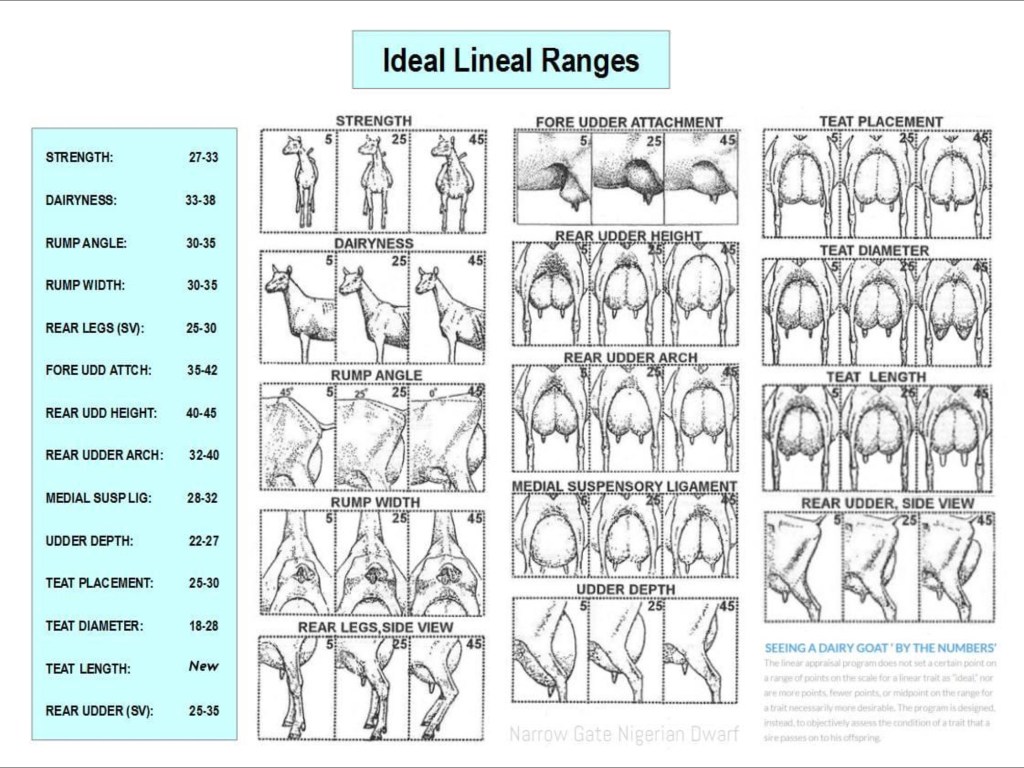 ADGA Genetics offers helpful tools for planning breedings, viewing progeny and Linear history of potential sires and dams, etc. You can create an account and save your goats pedigrees for easy reference and future planning. If you want to gain more knowledge about all the numbers and evaluations, I recommend watching the 2 part videos by Gene Dershewitz found on youtube ADGA genetics Part 1 – ADGA genetics Part 2.